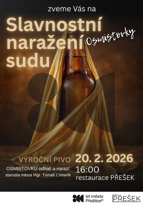 Slavnostní naražení výročního piva OSMISTOVKA, uvařeného speciálně k oslavám 800 let města Přeštice.